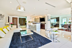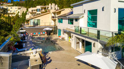 This exclusive, modern, newly constructed home is the epitome of style and elegance. Minutes from the Sunset Strip and Beverly Hills, the home provides breathtaking views of the city, canyon and coast. A magnificent glass staircase leads to the light-filled bedroom level boasting views & addtl. library. The upstairs baths include large walk-in showers and relaxing tub. The chef's kitchen is perfect for entertaining offering an over-sized island with high-quality counters and state-of-the-art stainless appliances. The spacious living room features a gorgeous wet bar and glass doors opening to the pool. This spa-like outdoor lounge offers pool, spa, sunbeds, lounging areas with built-in cushioned benches, a BBQ with full bar, outdoor kitchen, fire pit and two large screen TV's. The main level includes a guest suite with private entrance. This beautiful property is a definite must see. Sparing no expense, the decor is sleek, modern, and high end.